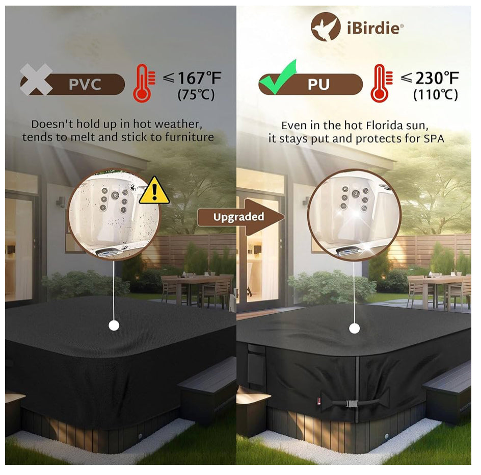 iBirdie Outdoor Waterproof and Weatherproof Hot Tub Cover 85 x 85 inch fit 84 x 84 or 83 x 83 or 82 x 82 or 7 ft x 7 ft Square SPA 600D Heavy Duty Protectors Protective Cover Cap